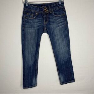 Vigoss Jeans Women’s 1/2 26 Blue Denim New York Flap Crop Low Rise Capri Stretch