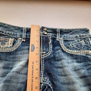 Vigoss Jeans Womens 5/6 Chelsea Capri Thick Stitch Western Cowgirl Rodeo Bling. Condition is pre-owned, jeans are gently used with a faint mark on hip. Tag size 5/6, L21 see photos for actual measurements of waist, rise, and inseam. Thanks for taking a look!