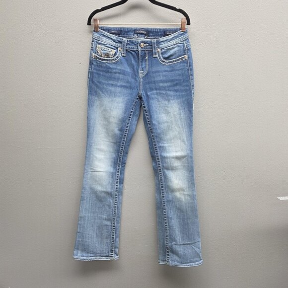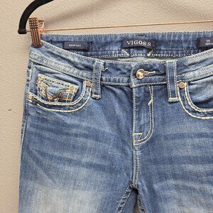 Vigoss Jeans Womens 6 L32 Blue Boot Cut Heritage Fit Embellished Pockets Stretch