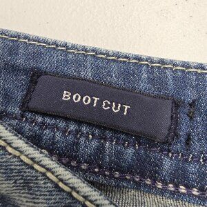 Notes: Classic bootcut stretch denim with decorative back pockets; please compare to a similar pair for best fit.