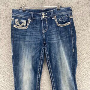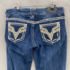 Vigoss Jeans Womens 9 10 Chelsea Blue Dark Wash Slim Boot Contrast Stitch Bling
