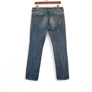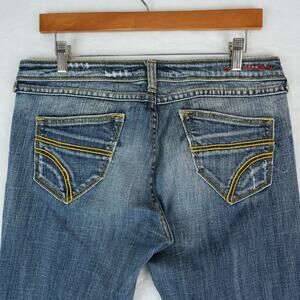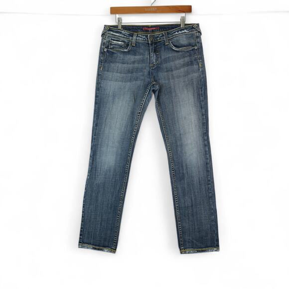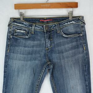 Vigoss Jeans Womens 9 Blue Straight Stretch Denim Mid Rise Contrast Stitch Y2K