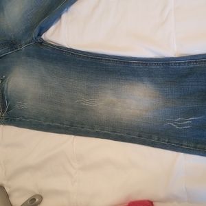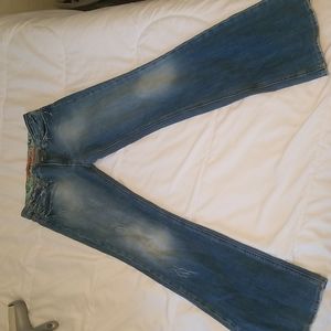 Super cute light color flared jeans. A little bit of stretch. No stains or holes. Waist has a silky waistband. Size 11 Juniors. small stain, will post pic