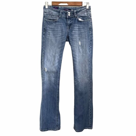 Vigoss Junior Women's The New York Bootcut Distressed Blue Denim Jeans Size 3