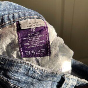 Vigoss Junior Women's The New York Bootcut Distressed Blue Denim Jeans Size 3. Small spot on front, see photos. Measurements Waist: 28" Inseam: 30" Rise: 7" Offers always welcome! Measurements are approximations taken while hanging