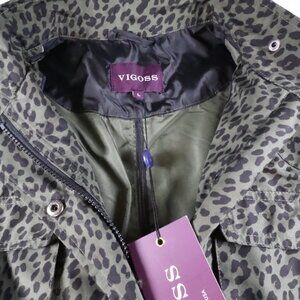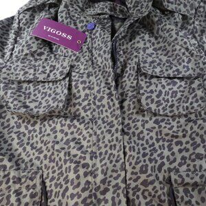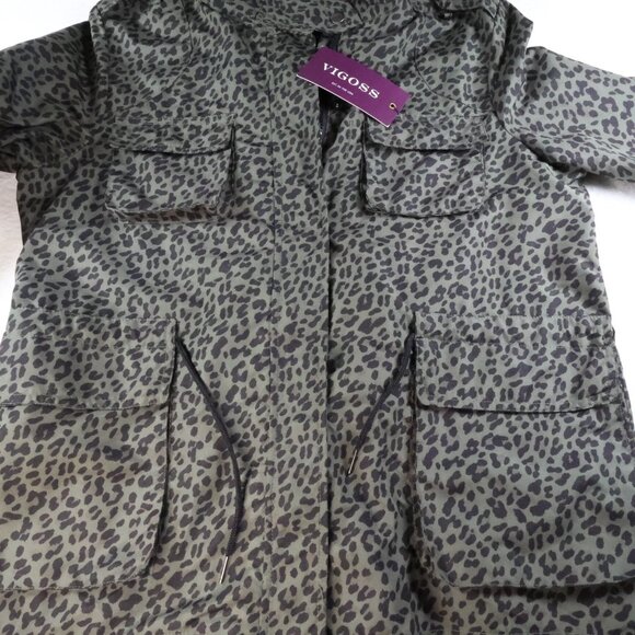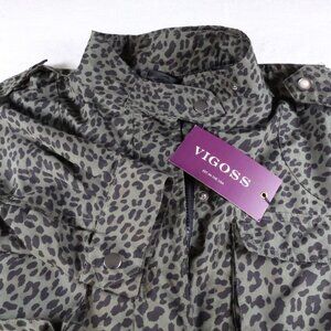 Vigoss Leopard Print Anorak Utility Cargo Outfitted Women L Olive Jacket NWT