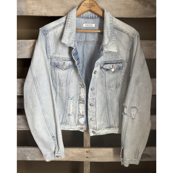 Vigoss Light Wash Denim Jean Jacket Size XL Button Closure Pockets