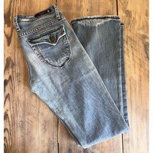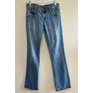 Vigoss Low Rise Bootcut Jeans Juniors 7 Lightwash Flap Pocket Distressed Y2K