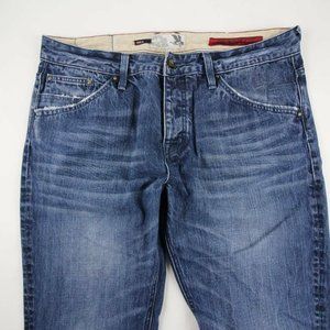 Vigoss Mens Bootcut Jeans Blue Light Denim Embellished Button Fly Size 38x32