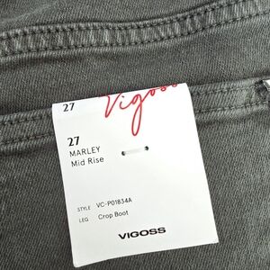 VIGOSS Mid Rise Crop Boot Jeans Size 27 Olive Green – Trendy Fit - military chic, utility casual, Y2K revival. Pair with a cropped leather jacket and chunky boots for an effortless utility‑meets‑urban edge; perfect for brunch with friends or casual Friday at work.