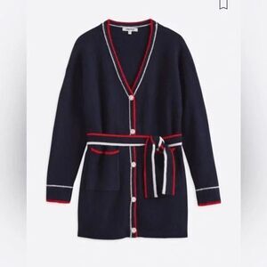 Vigoss NWT women's romo wrap button front long line navy red white cardigan Size XL