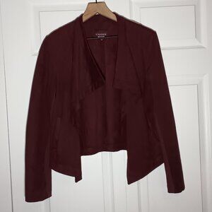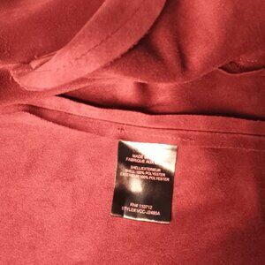 Vigoss Open Front Draped Faux Suede Jacket Size M Burgundy Wine Color