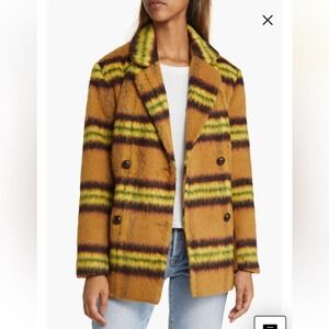 Vigoss Plaid Double Breasted Peacoat Lemon, Brushed Polished Checks Preppy Fall