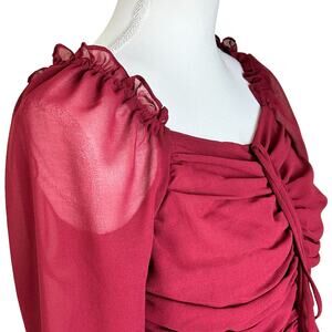 Vigoss Ruffle Chiffon Top Size Large Cherry Red Peplum Rushing Smocked Sheer
