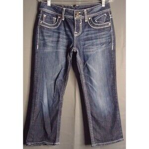 Item: Vigoss The Dublin Distressed Jeweled Dark Wash Capri Jeans Juniors Size 5