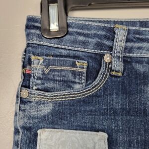 Vigoss The Jagger Bermuda Shorts Girl Sz 10 Medium Wash Patchwork Grey Floral