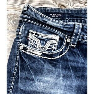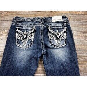 Vigoss The New York Boot Cut Jeans Size 32 x 33 Flap Back Pockets Distressed. The jeans are in great condition with some very light wear to one of the pant leg bottoms. No stains and smoke free!