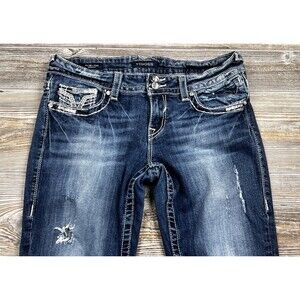 Vigoss The New York Boot Cut Jeans Size 9/10 Flap Back Pockets Distressed