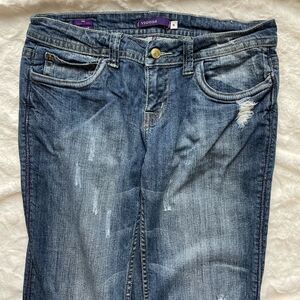 Lightly Distressed Denim Jeans with Back Pocket Flaps by Vigoss Bootcut Style.
