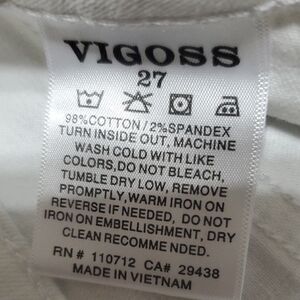 These Vigoss white jean shorts are a stylish addition to any wardrobe, featuring a high-waisted fit and a trendy frayed hem. Crafted from durable denim, they offer a clean and minimalistic look perfect for casual outings.