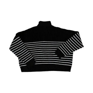 Vigoss Woman's 1/4 Zip Large Black Cropped Collared Ribbed Sweater White Stripes