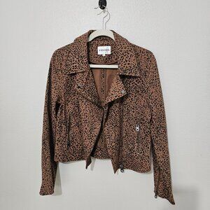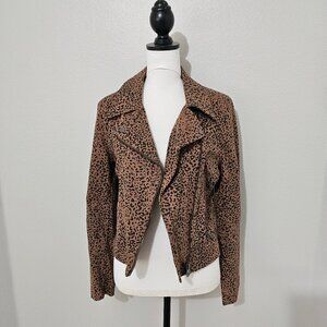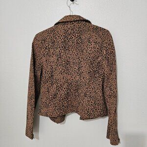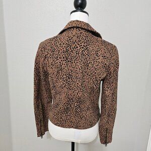 Vigoss Women's Brown & Black Chic Animal Print Moto Denim Jacket Size Small