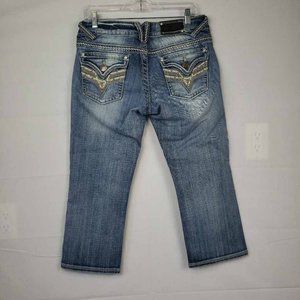 Vigoss Women's Capri Jeans Blue Stretch Pockets Embroidered Medium Wash Denim 7