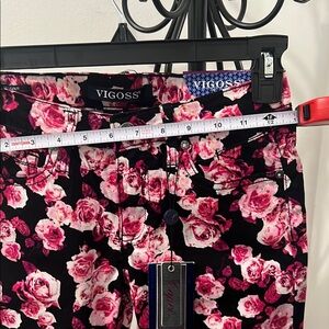 Vigoss Women's Cropped Jeans with Pink Floral Pattern