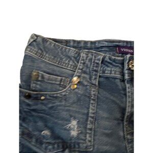 Vigoss Women's Denim Jean Shorts Distressed Detailing & Skull Buttons Size S Y2K