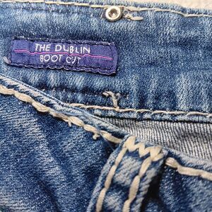 The Vigoss Women's Sz 11 Length 31 Boot Cut Jeans in The Dublin Style Made from 98% Cotton and 2% Spandex, these jeans feature a mid-rise and bootcut style, perfect for all seasons. With a zip closure and double back pockets, the denim fabric is a solid light wash with embroidered accents. Rise 8in inseam 29in