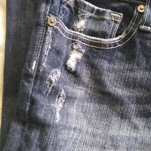 Vigoss mid rise boot cut lightly distressed jeans. dark wash. Like new condition. Size 11.