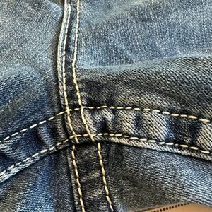 Introducing our stylish Vigoss Jeans in size 27 with a comfortable 28 inch inseam, part of the Chelsea Boyfriend collection designed for a relaxed yet chic look. These jeans are crafted from a high-quality, durable denim material that's designed to last. The color is classic blue with a gentle fade effect that adds character and depth to the overall design. Distinctive stitching on the chic back pockets creates an eye-catching V pattern, further enhanced with intricate detailing for an upscale touch. The waist features a tasteful brand patch that ensures the authenticity of your purchase. Perfect for a casual day out or dressing up with your favorite blouse, these jeans pair effortlessly with any style choice. Elevate your denim wardrobe with this versatile and timeless pair of Vigoss Jeans.