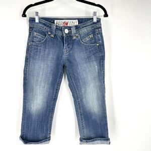 Vigoss Women's Capri Cropped Jeans Blue Denim Medium Wash Size 2 Distressed