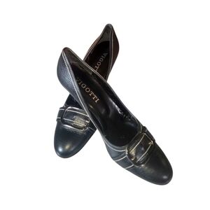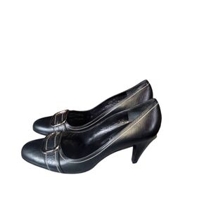 Vigotti Black Women's Buckle Detail Round Toes Made In Spain Leather Heels Sz 11