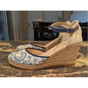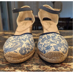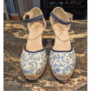 Viguera Sandals Womens 41 US 9.5 Espadrilles Wedges Navy White Boho Spain