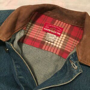 Viintage Marlboro Denim Distressed Trucker Jean Jacket Men's Large Made In USA 9