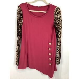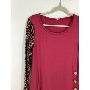 Viishow Maroon Leopard Print Buttoned Pullover Sweater Women's Size Medium