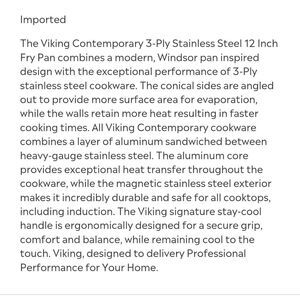 Viking 3-Ply 304 Stainless Steel w/Aluminum Core 12" Fry Pan