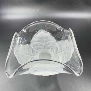 Viking Art Glass Epic Leaf Compote in Crystal Satin Frosted Clear Dish Bowl VTG
