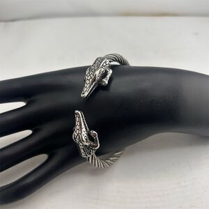 Viking Crocodile Head Twisted Cable Cuff Bracelet Silver Unisex