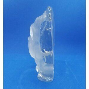 Viking Dalzell dog figure is clear and frosted glass. This looks to be a Yorkie or a Shih Tzu. He can serve as a paperweight, figurine or one half of a set of bookends. This was made in the USA.