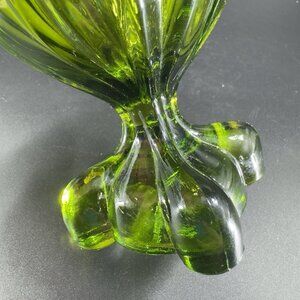 Viking Glass Avocado Green Epic Four Square Base Swung Glass Vase Bowl Dish VTG