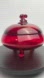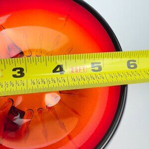 Add a bold pop of color and vintage charm to your glass collection or holiday decor featuring a three-footed base and a looped finial lid. The rich red glass glows brightly under UV light caused by the presence of cadmium. This is a stunning piece for glass collectors, retro decor lovers, or photography enthusiasts.