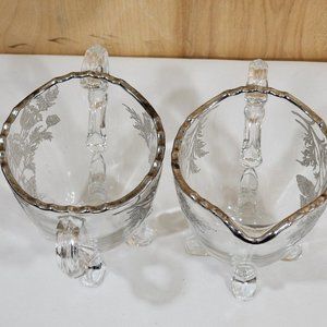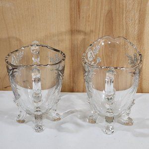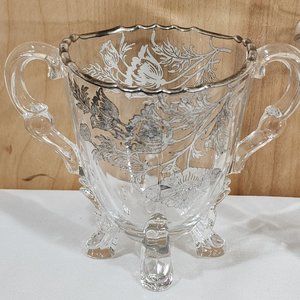 Viking Glass Silver City Flanders Creamer and Sugar 4 toed poppy silver overlay