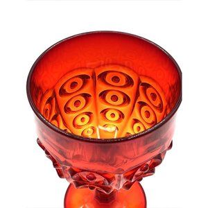 Viking Glass Yesteryear Bullseye Red Amberina Chalice Footed Bowl 8.75"