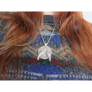 This Viking-inspired raven and Tree of Life pendant represents wisdom and connection to Norse mythology. The pendant measures 1.4" in diameter and hangs from a 23.5" chain with a durable alloy finish. Perfect for those drawn to Norse symbolism, Odin’s ravens, or Viking heritage.
