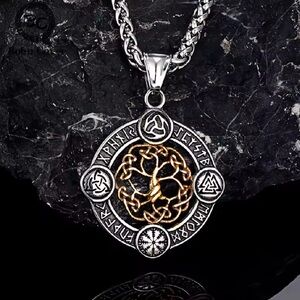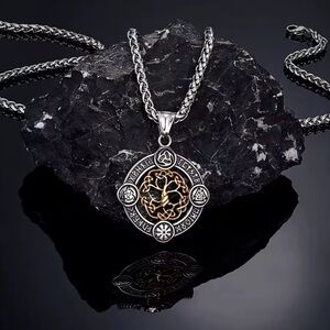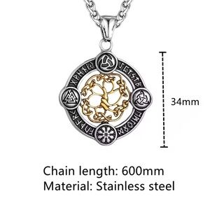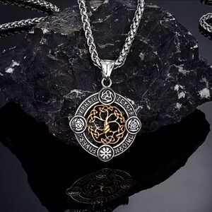 Viking Rune Life Tree Stainless Steel Silver Luck Talisman Necklace