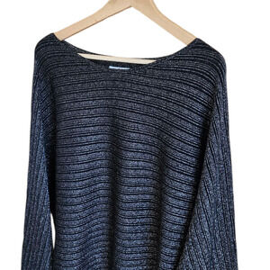 Vila Milano Blouse Knit Stripe Shimmer Stretch Oversize Black Women's 3X