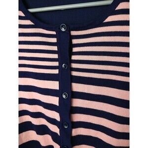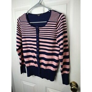 Women's pink navy blue striped button down long sleeve cardigan in good condition. Ribbed hem and wrist.
