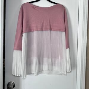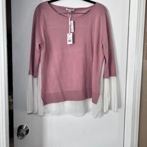 Vila Milano Blush Pink Top Large NWT Pleated Chiffon Sleeves Cotton Clash